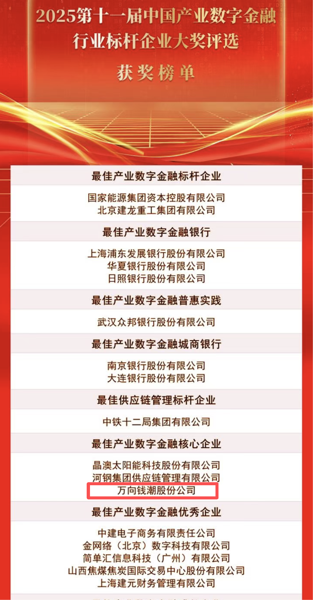 万向财务公司充分发挥服务专长,整合金融资源,推进与中国银行浙江省分行、浦发银行杭州分行、光大银行杭州分行、中信银行杭州分行完成系统直连,落地万向钱潮等核心企业,实现业务全流程数字化,并为链上小微企业提供专属优惠利率,切实降低融资成本。目前,系统已接入供应商近800户,融资总额超10亿元,获得广泛认可与好评。未来,万向财务公司将继续深耕产业数字化与金融创新融合,激活产业发展动能,共建协同高效、风险可控、价值共享的金融服务生态,服务实体经济迈向高质量发展新征程!